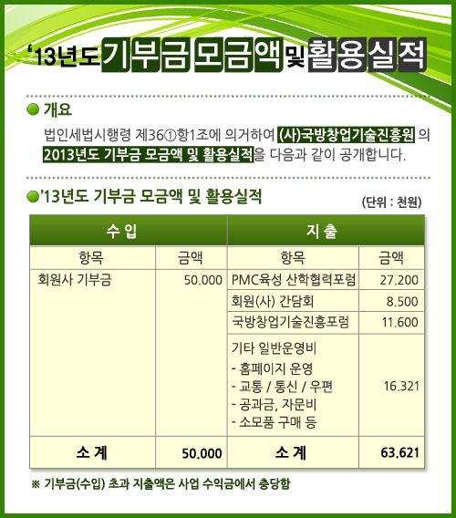 2013³âµµ ±âºÎ±Ý ¸ð±Ý¾× ¹× Ȱ¿ë½ÇÀûÀ» ÷ºÎ¿Í °°ÀÌ °ø°³ÇÕ´Ï´Ù.