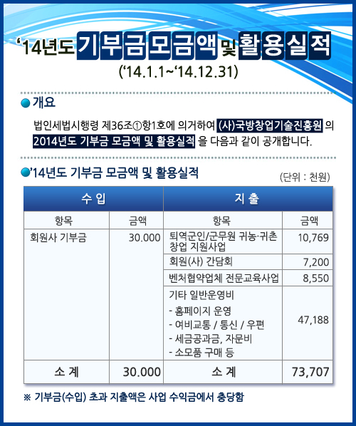 2014³âµµ ±âºÎ±Ý ¸ð±Ý¾× ¹× Ȱ¿ë½ÇÀûÀ» ÷ºÎ¿Í °°ÀÌ °ø°³ÇÕ´Ï´Ù.